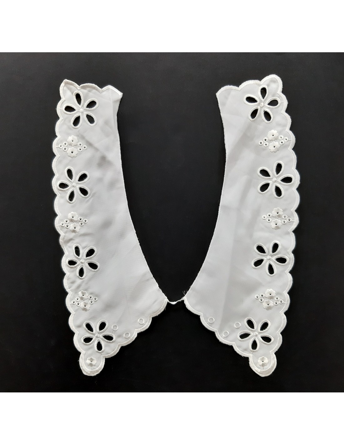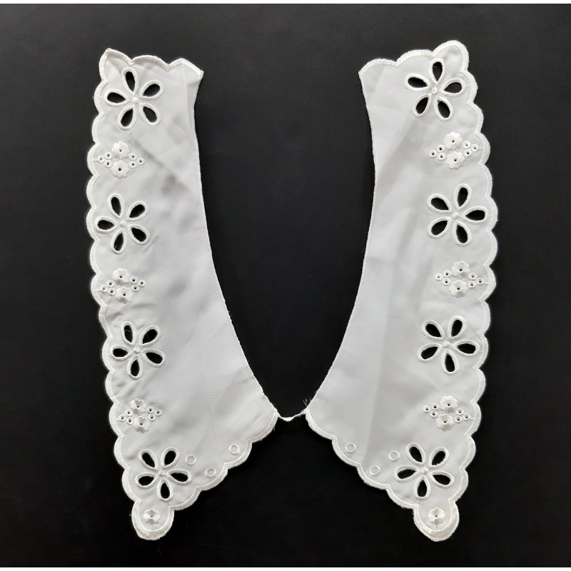 Cuello bordado de algodón polyester de color blanco de 38 cms.