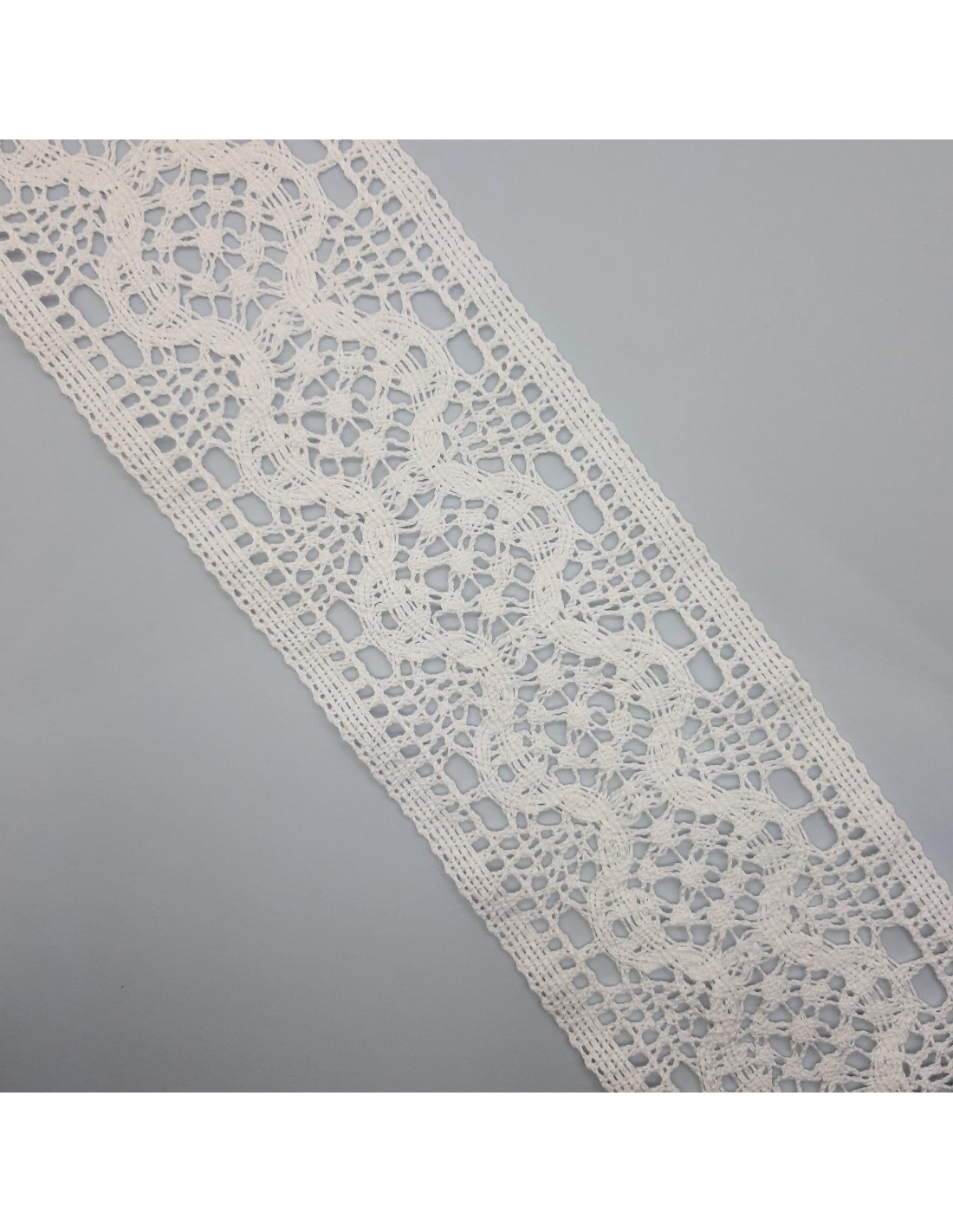 Juego puntilla de bolillo picos de 9 cms y entredos de bolillo de 8 cms de color blanco roto.