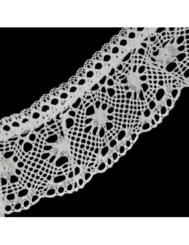 Encaje bolillo rizado blanco con pasacintas de 8 cms