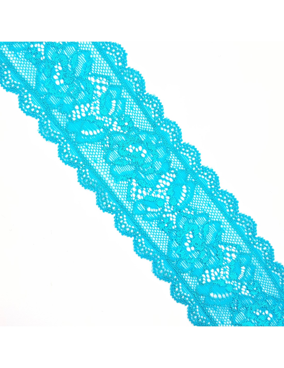 Entredos de encaje elástico floral con un diseño elegante y distinguido para infinidad de proyectos decorativos. Pieza versátil muy utilizada para ensanchar prendas y complementos de lencería, dándoles un toque único y personal que nunca te puede faltar.