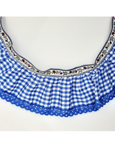 Volante con cuadros vichy fruncido de color azulón 5 cms