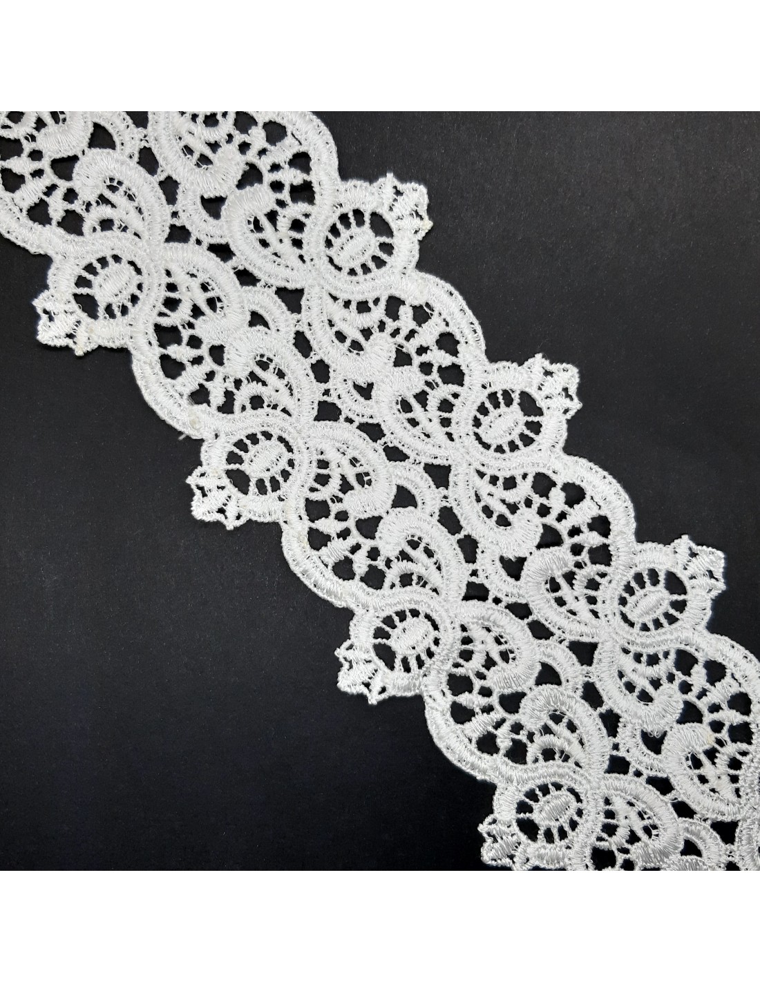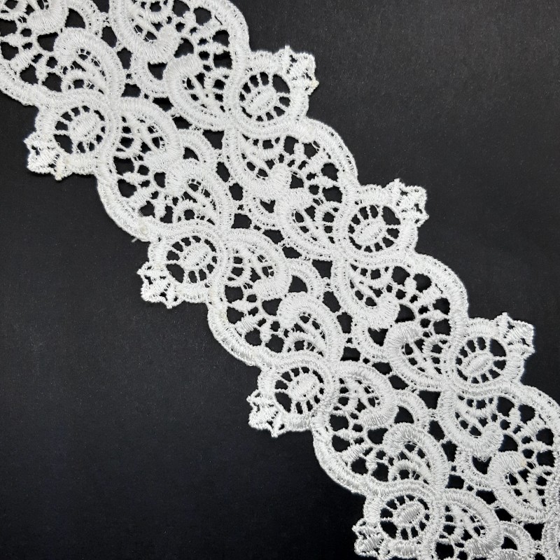 Encaje de guipur con puntas de 80 mm y color blanco roto.