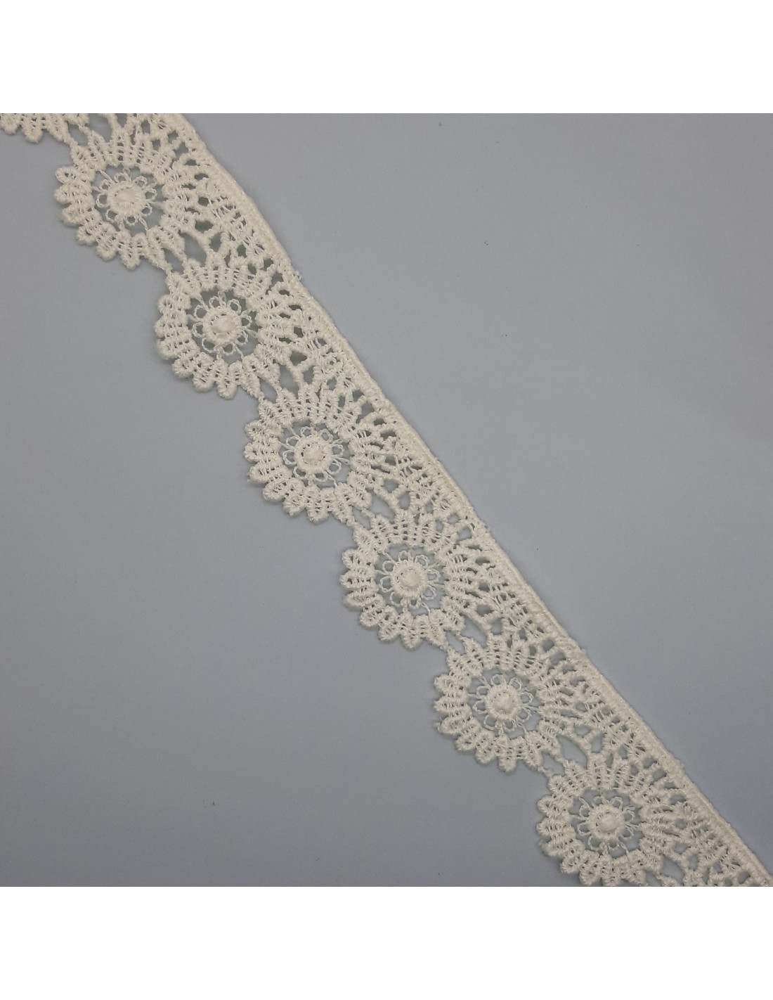 Encaje guipur fino de 3 cms con flores decorativas.