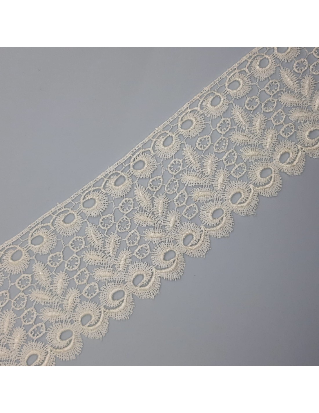 Encaje guipur ideal para adornar prendas de vestir, prendas y complementos infantiles y decoración del hogar. Pieza versátil para darle a tus prendas y complementos unos diseños que otorgan volumen y elegancia. Este adorno queda perfecto en complementos o prendas tanto de fiesta como casual, con unos resultados distinguidos y exclusivos. Muy utilizado en trajes de flamenca y regionales.