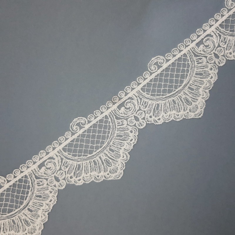 Encaje tul bordado de 5,5 cms con puntas decorativas.