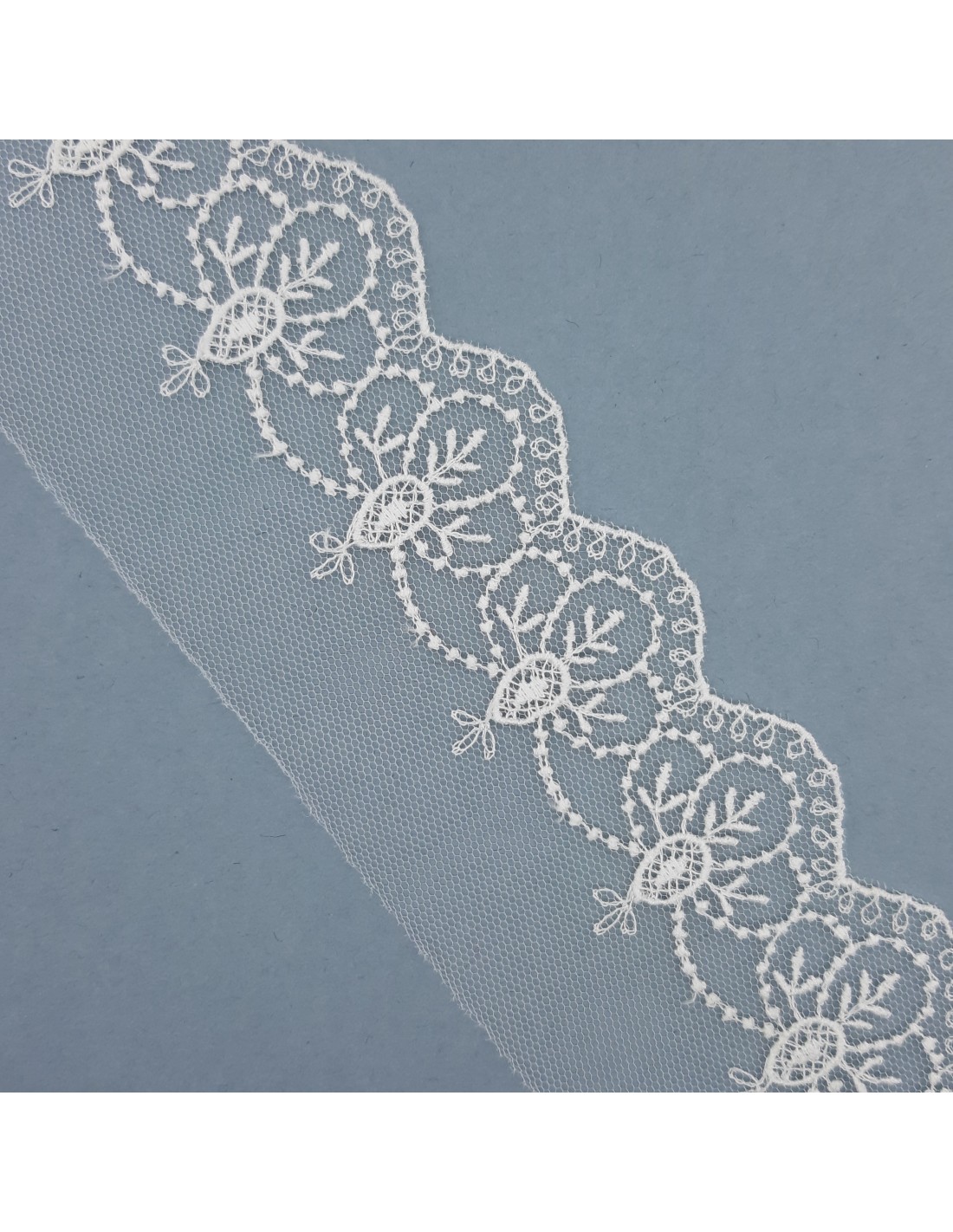 Puntilla encaje de tul bordado blanco roto de 5 cms. Bordado 3,5 cms.