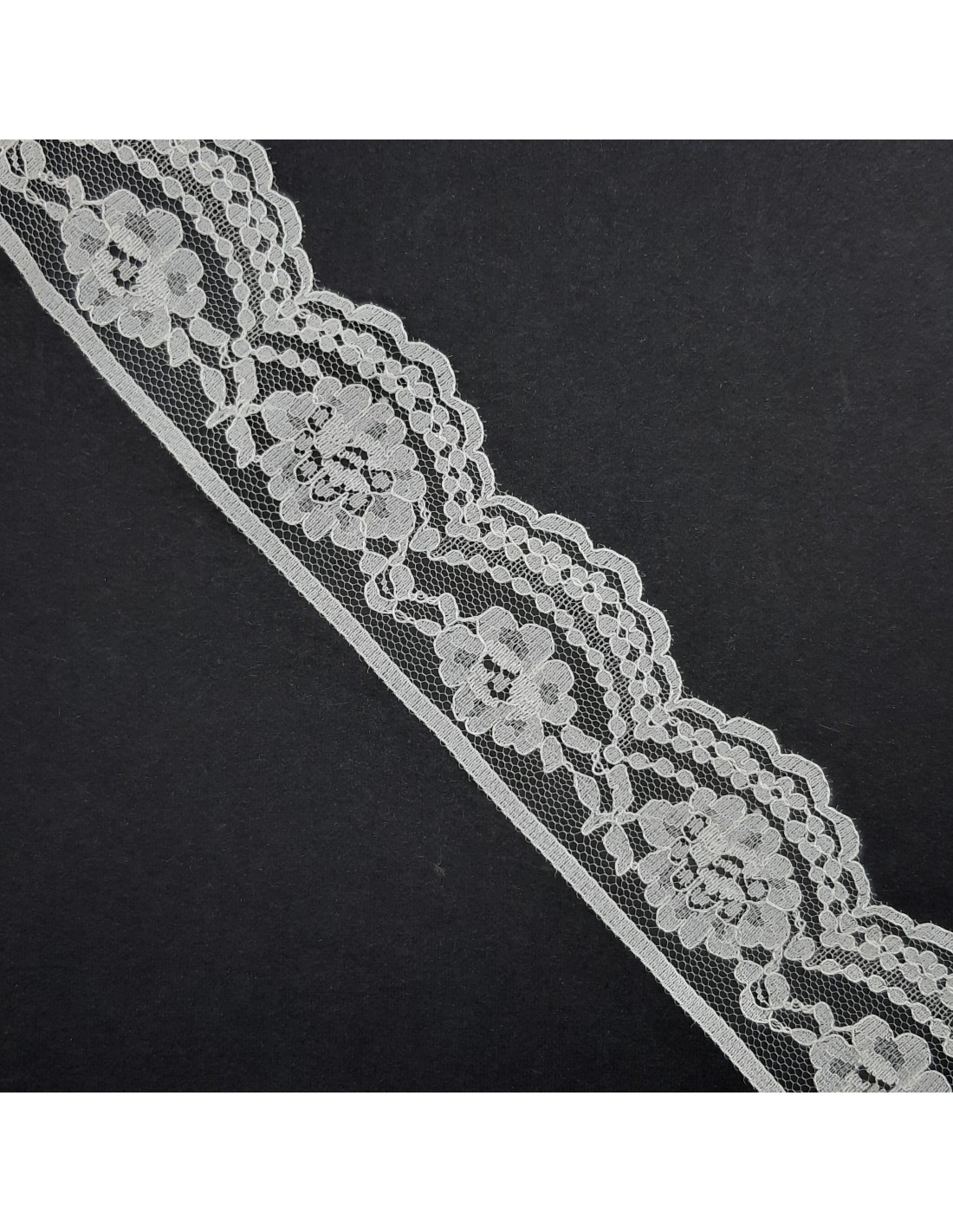 Puntilla Encaje nylon de 40mm con flores y puntas decorativas. Especial para remates y acabados.