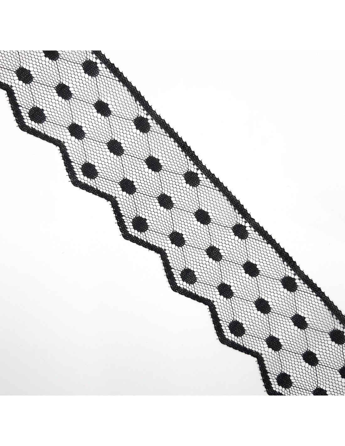 Encaje nylon negro con lunares decorativos de 9 cms. Especial para remates y acabados.