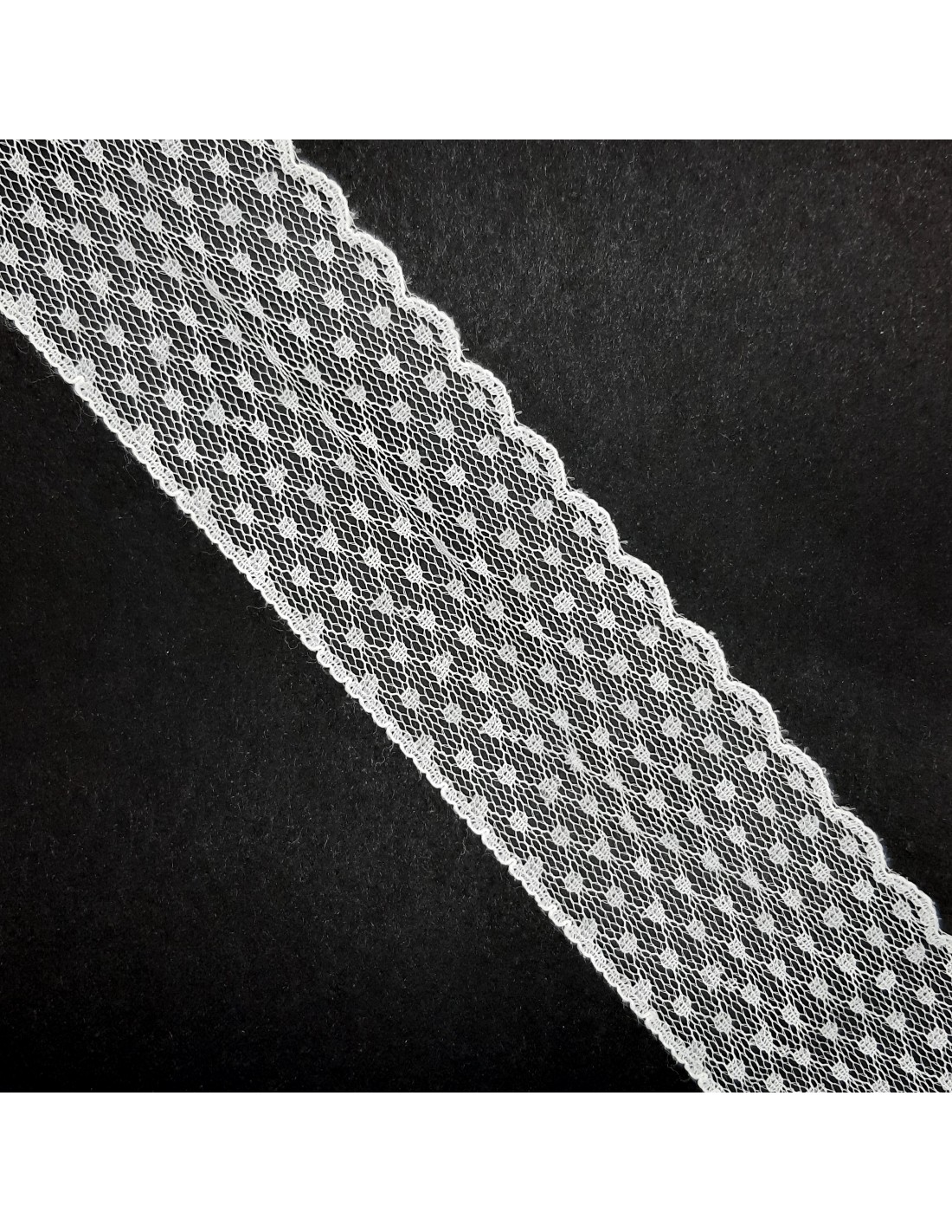 Unos de lo principales usos de este tipo de encaje es para decorar diademas y tocados, prendas, accesorios y complementos de fiesta, ceremonias, eventos,... dándoles un toque personal y único. También es muy utilizado para remate, ribetes y acabados de prendas, tanto de fiesta como casual. Ideal para camisetas, pantalones, blusas,..