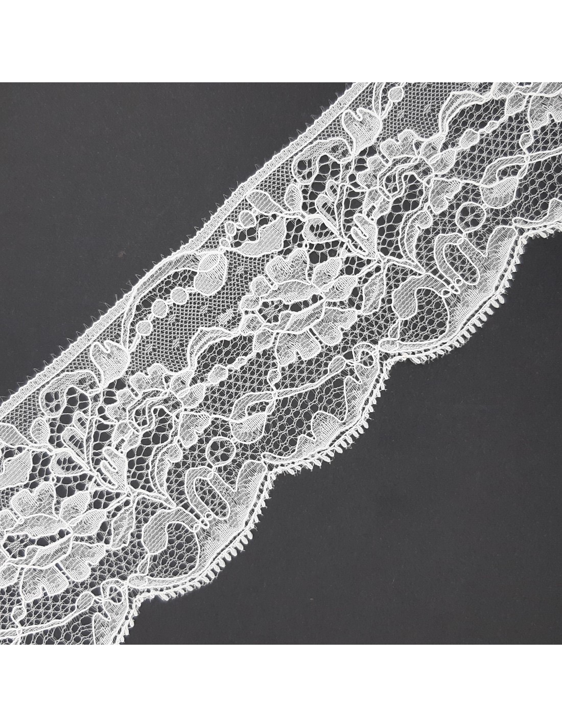 Puntilla encaje nylon de color blanco con relieve de 7,5 cms.