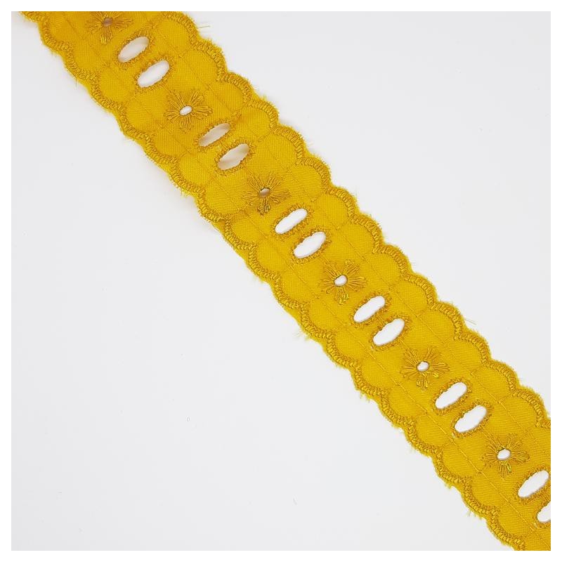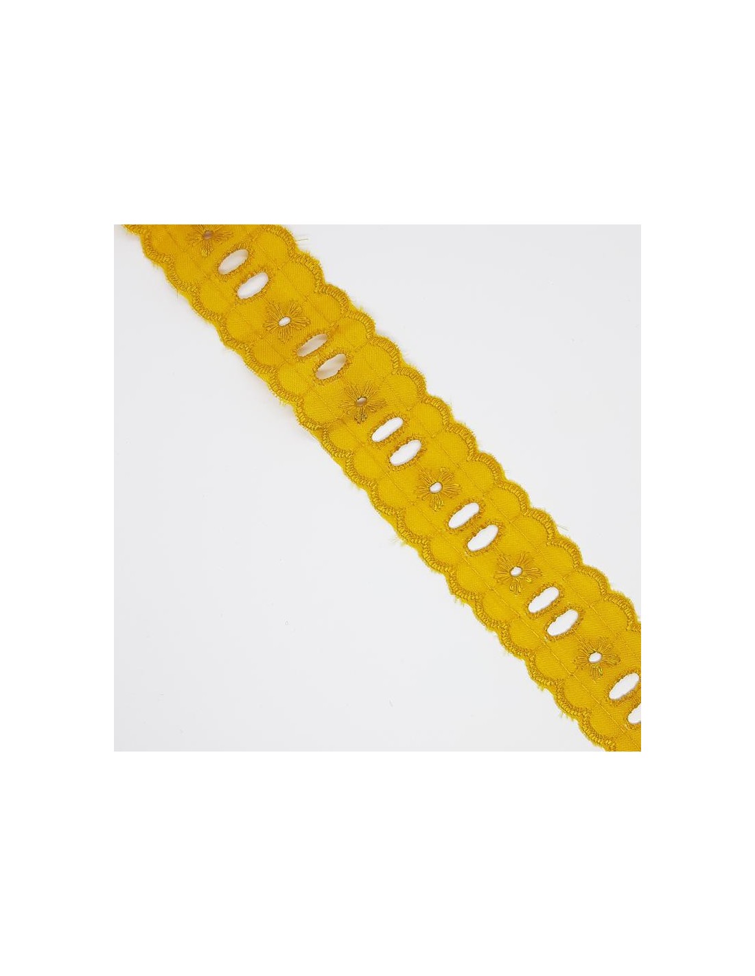 Pasacinta bordada de seda de diseño clásico. Tira de colores vivos y con pequeños círculos perforados y acabado con ondas decorativas. Adorno versátil para un sinfín de proyectos decorativos. Especial para prendas y complementos del hogar, como juegos de sábanas y toallas, cortinas, manteles, prendas infantiles, cestas, manualidades,... y para muchos más trabajos, dándoles un toque único y personal.