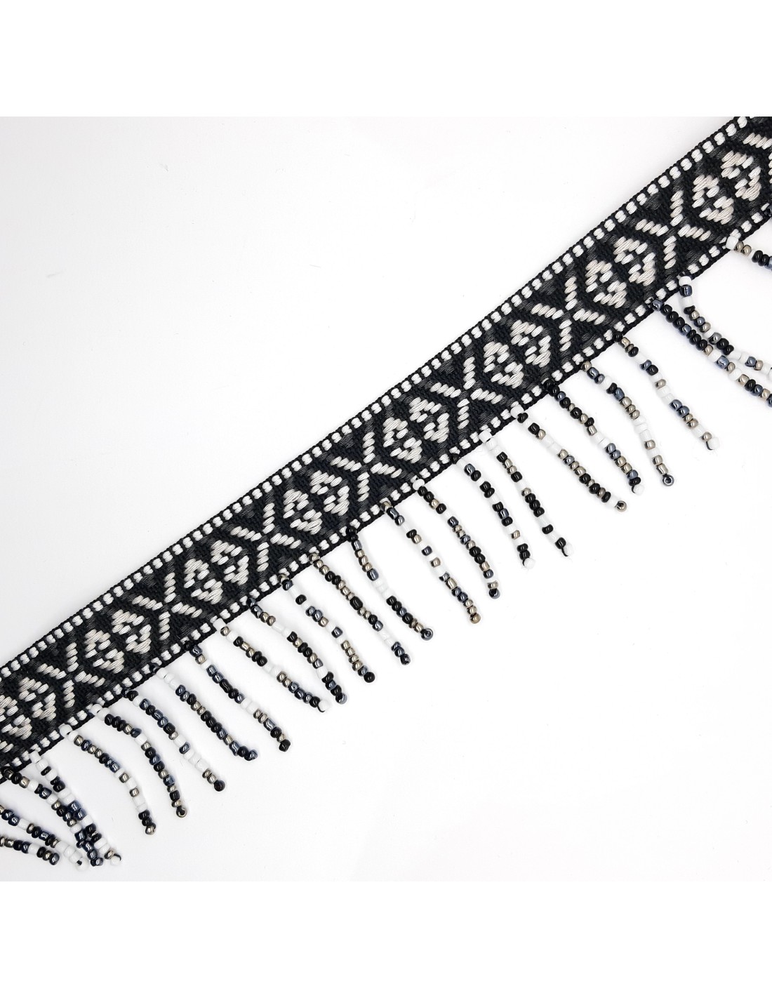 Fleco abalorios rocalla multicolor de 50 mm con galón étnico.