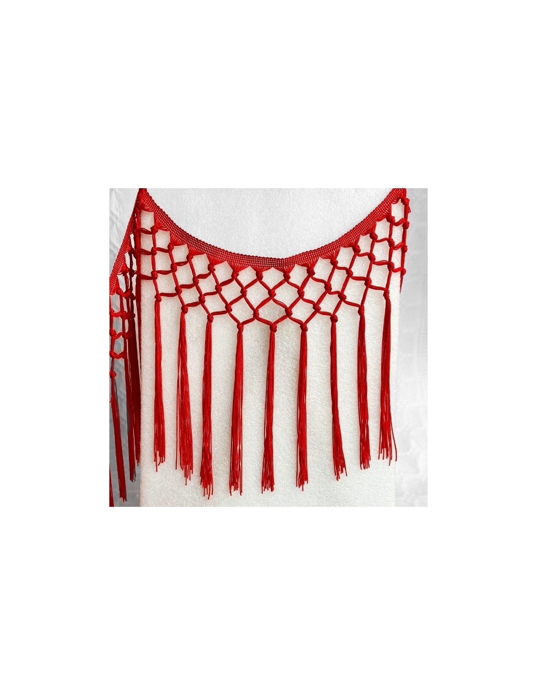 Sumérgete en la tradición del trabajo manual con este hermoso fleco anudado. Su delicado enrejado de cuquillo crea un atractivo patrón de rombos, añadiendo textura y sofisticación a tus creaciones. Perfecto para dar un acabado especial a tus proyectos de decoración o para realzar la belleza de tus prendas. Un detalle artesanal que marca la diferencia.