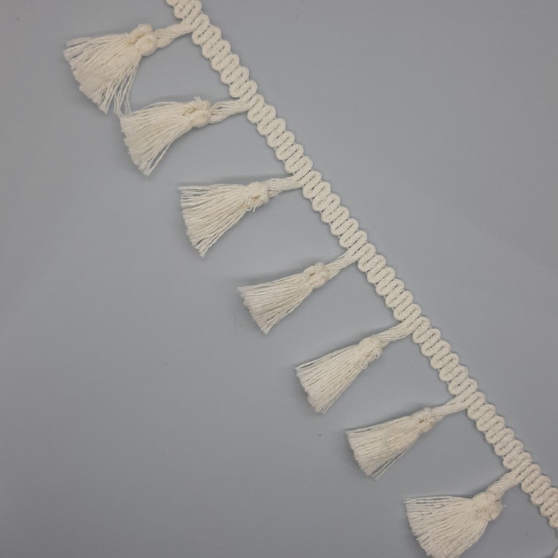 Fleco de borlas con un diseño clásico. Adorno especial para pareos, toallas, colchas, vestidos, complementos,.. pieza versátil con infinidad de proyectos decorativos. Ideal para manualidades.