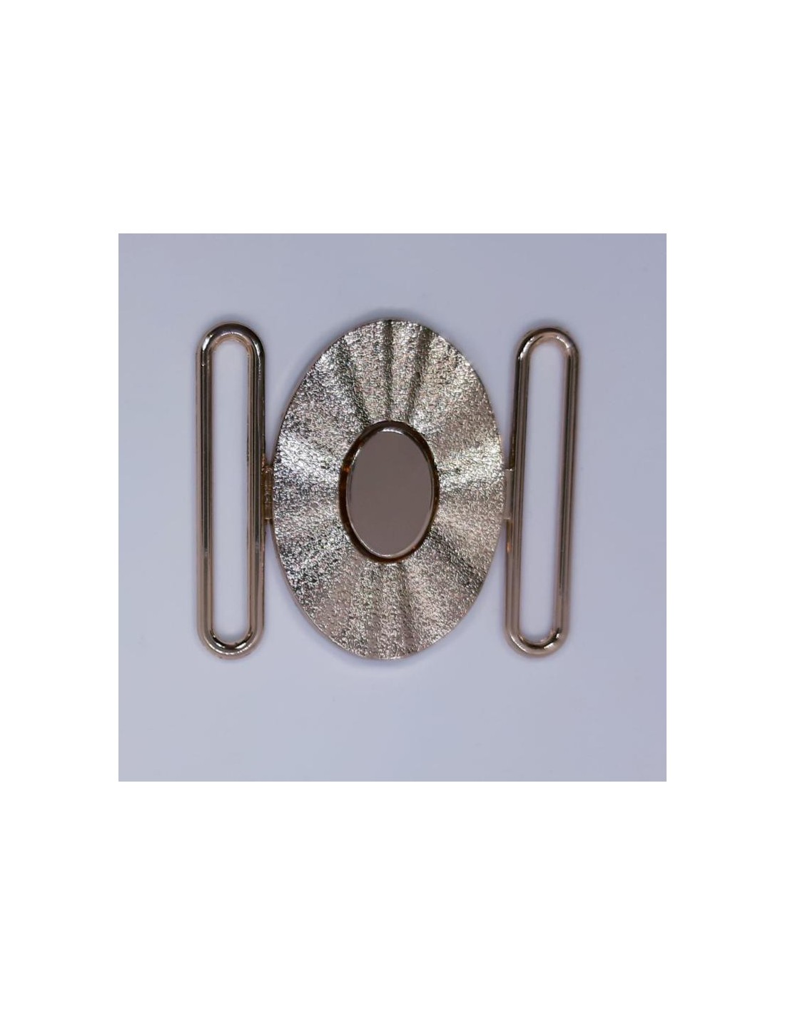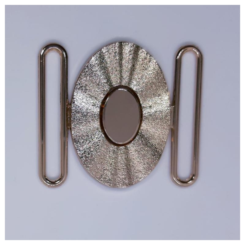 Hebilla oval de 6 cms metálica con brillo decorativa.