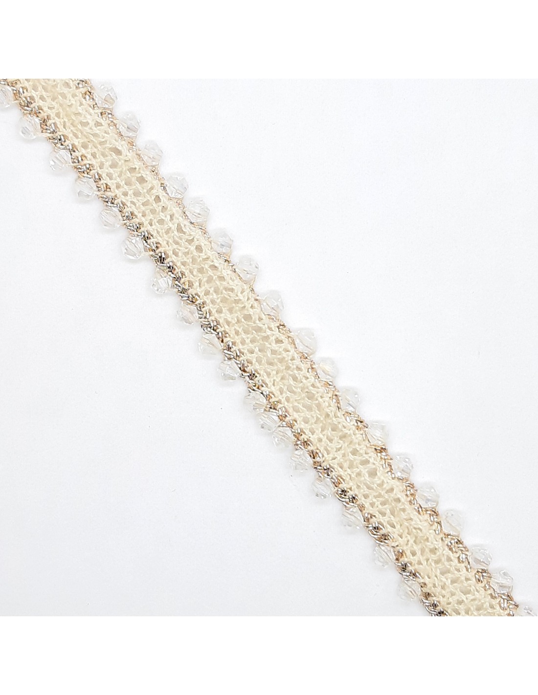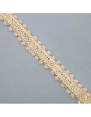 Galón decorativo de rejilla color crudo y oro con filos de piedras de cristal de 20 mm.