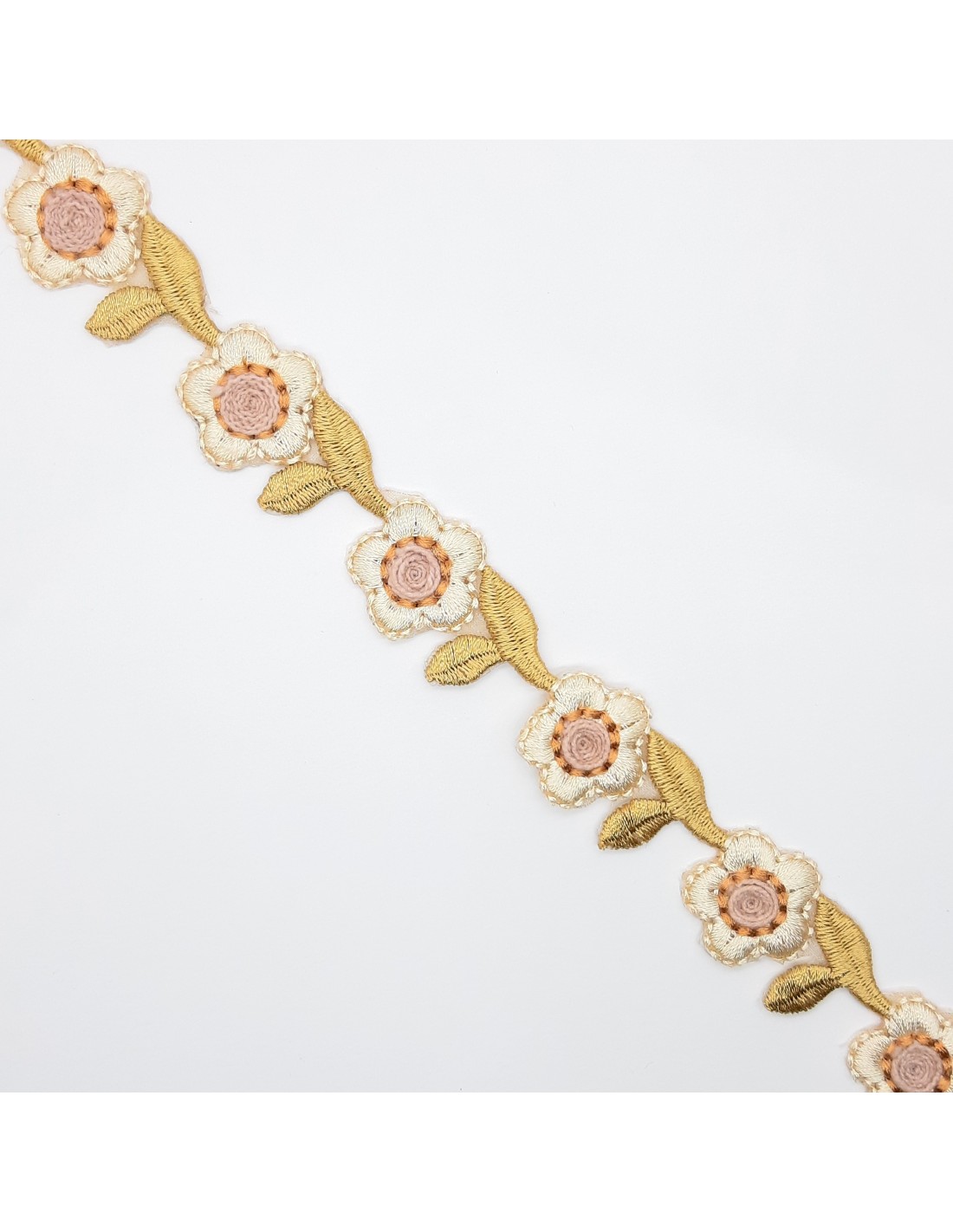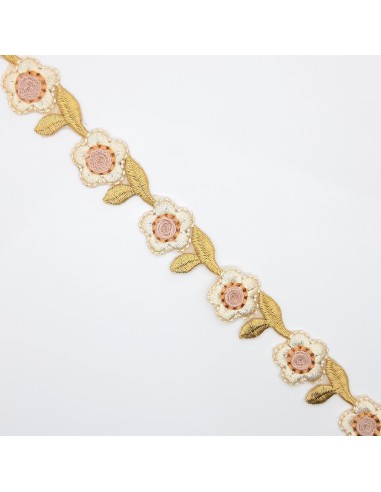 Galón flores bordadas beige
