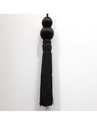 Borla rayón con 2 cabezas forma bola forradas de hilo de seda y flecadas de cuquillo.