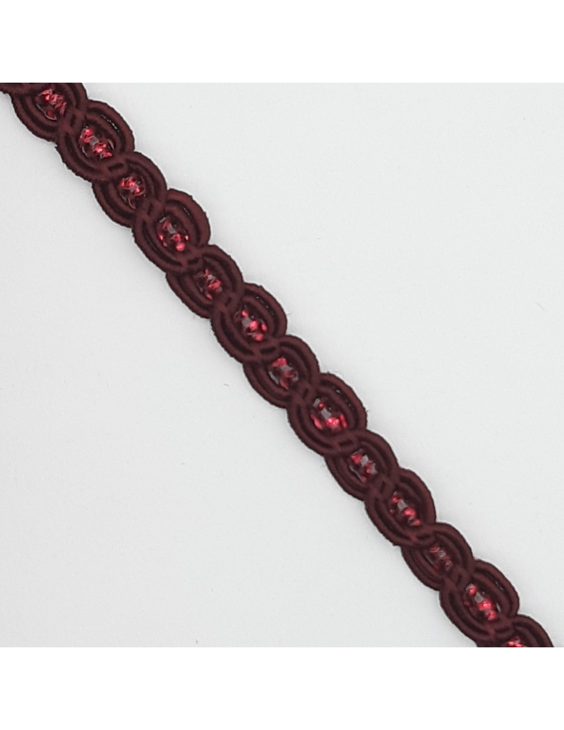 Galón pasamanería con ondas y brillo lurex de 7 mm y color burdeos