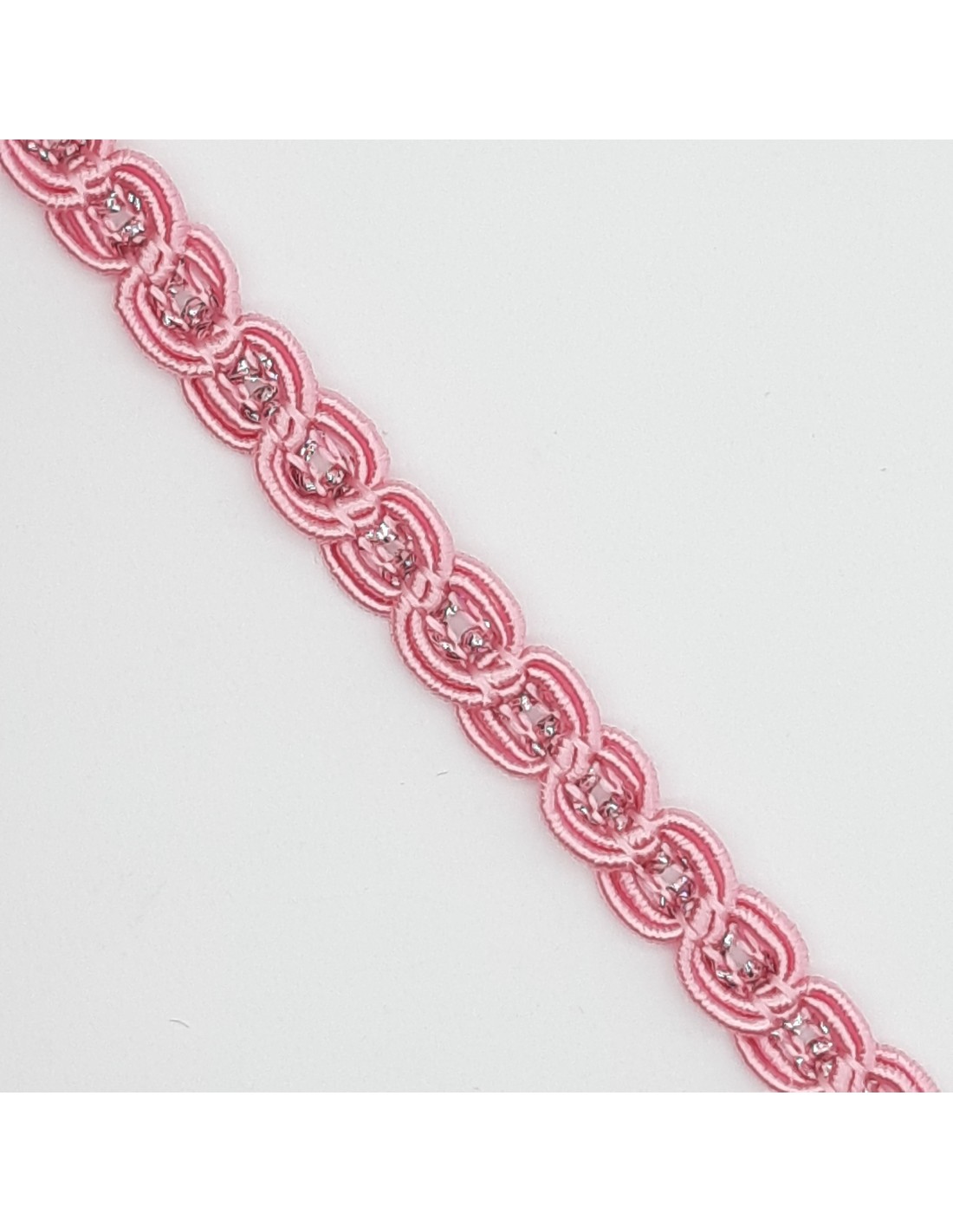 Galón pasamanería con ondas y brillo lurex de 7 mm y color rosa