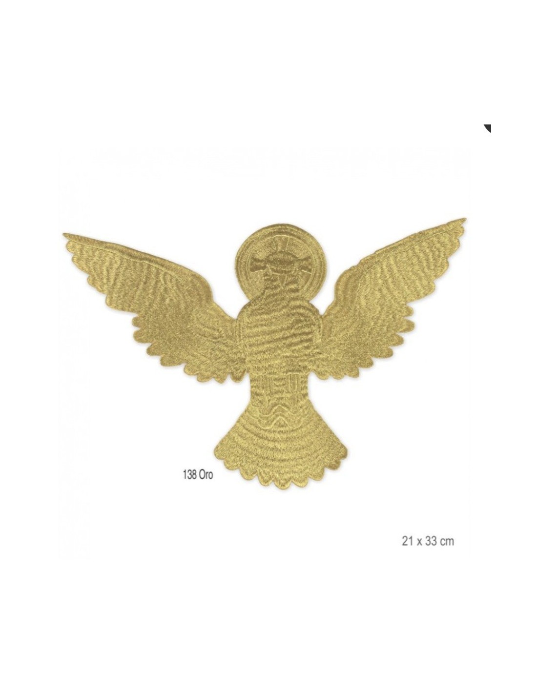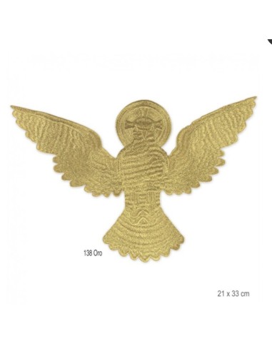 Aplique bordado termoadhesivo clásico y elegante, realzado por un acabado dorado metalizado que irradia calidez y solemnidad. Especialmente utilizado  durante las celebraciones religiosas.