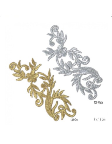 Aplique bordado termoadhesivo clásico y elegante, realzado por un acabado dorado metalizado que irradia calidez y solemnidad. Especialmente utilizado durante las celebraciones religiosas.