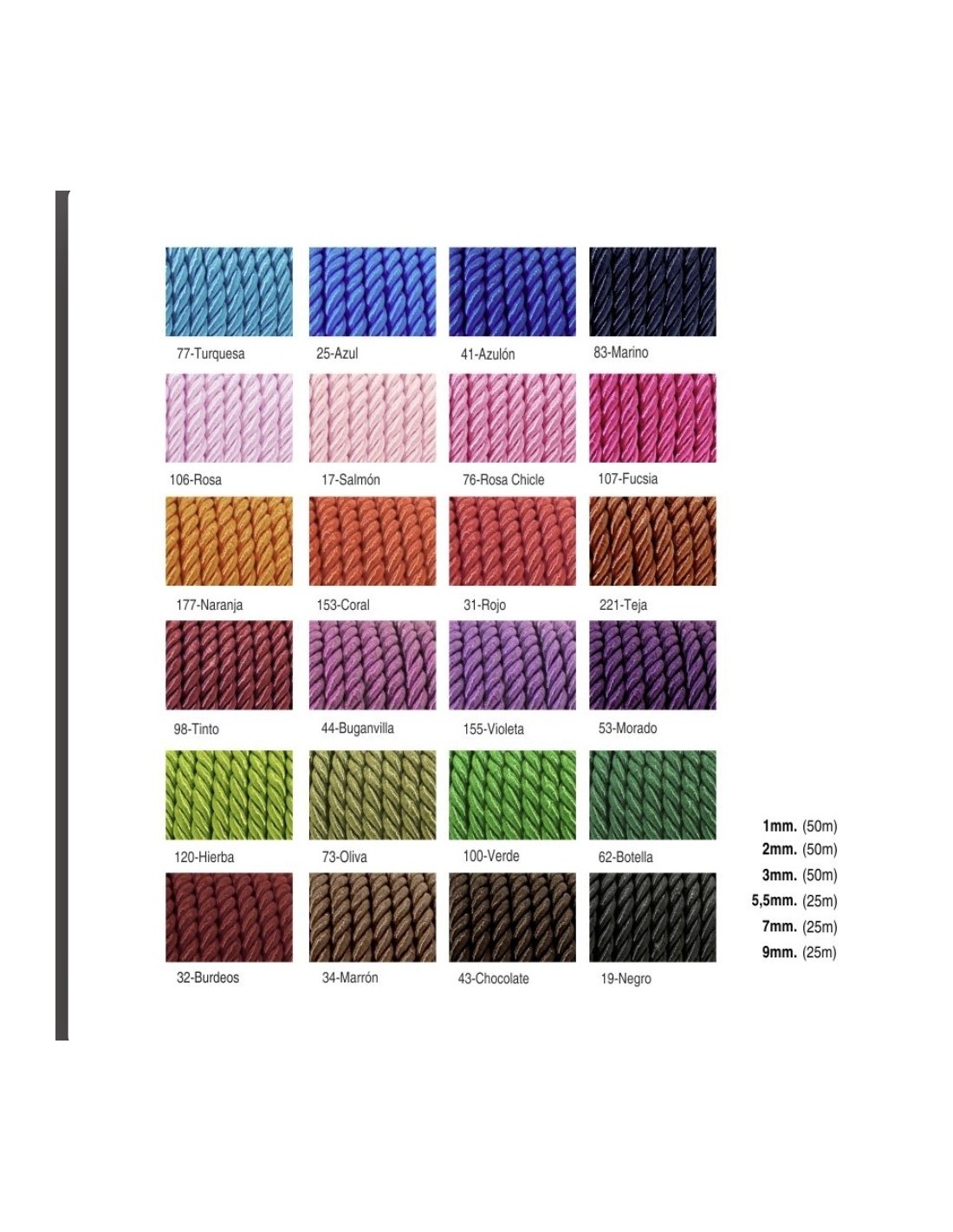 Cordón trenzado seda rayón 5,5 mm POR PIEZA 25 METROS