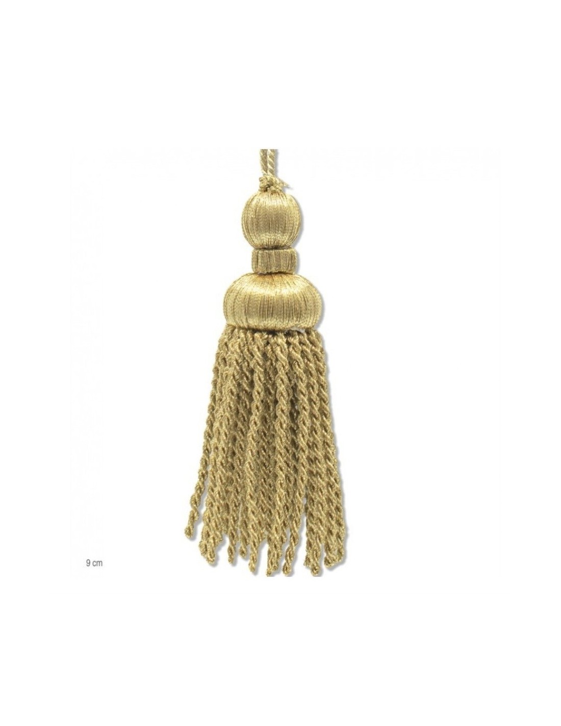 Encuentre la excelencia en cada hebra. Elija la borla dorada de 9 cm para coronar sus creaciones con una elegancia inigualable.