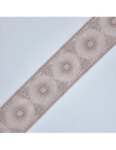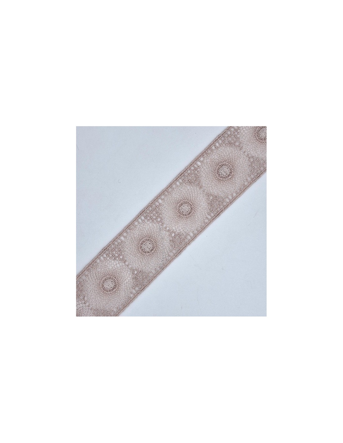 Añade un toque de romanticismo y sofisticación a tus proyectos con nuestro exquisito encaje guipur entredos de 3 cm en un precioso tono rosa palo.