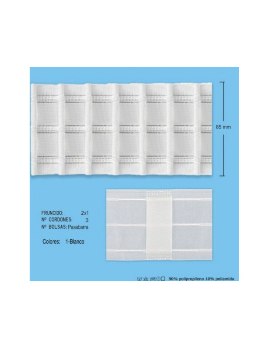 Cinta Cortina fruncidora pasabarra de 85mm blanca.