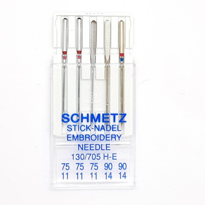 Aguja máquina para bordar SCHMETZ de talón plano con ojo y ranura ancha para alojar hilos gruesos