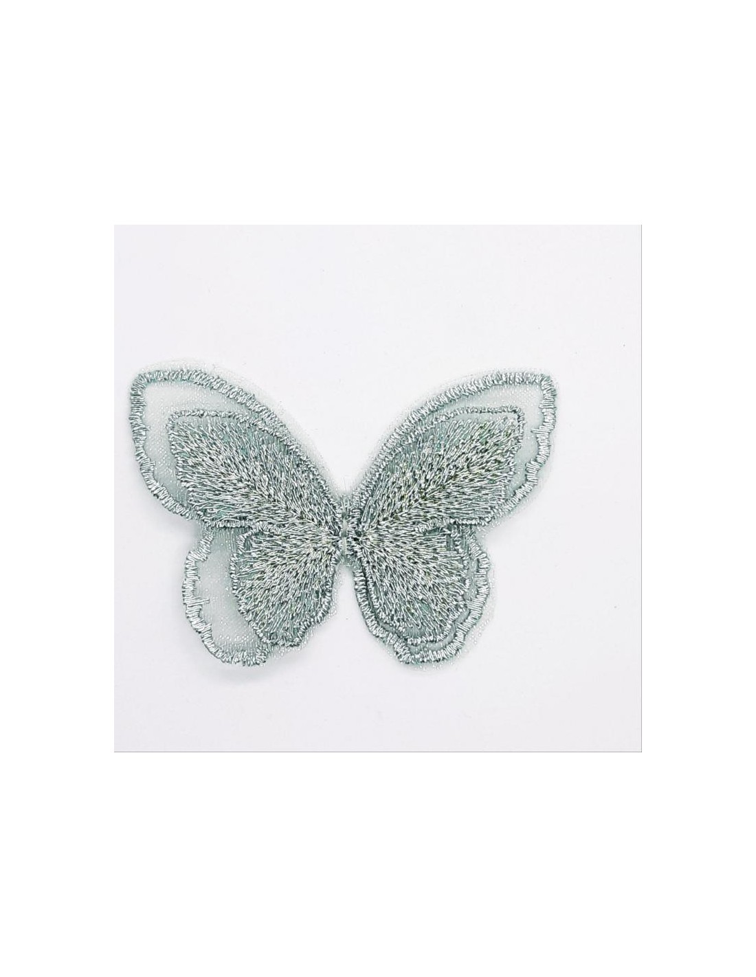 Aplique fantasía, con forma de mariposa brillante. Adorno especial para decorar tus prendas y complementos, dándoles un toque único y original, que nunca te puede faltar.