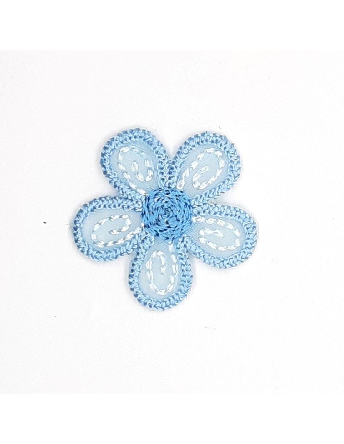 Aplique flor decorativa termoadhesiva de 2,5 cms color celeste