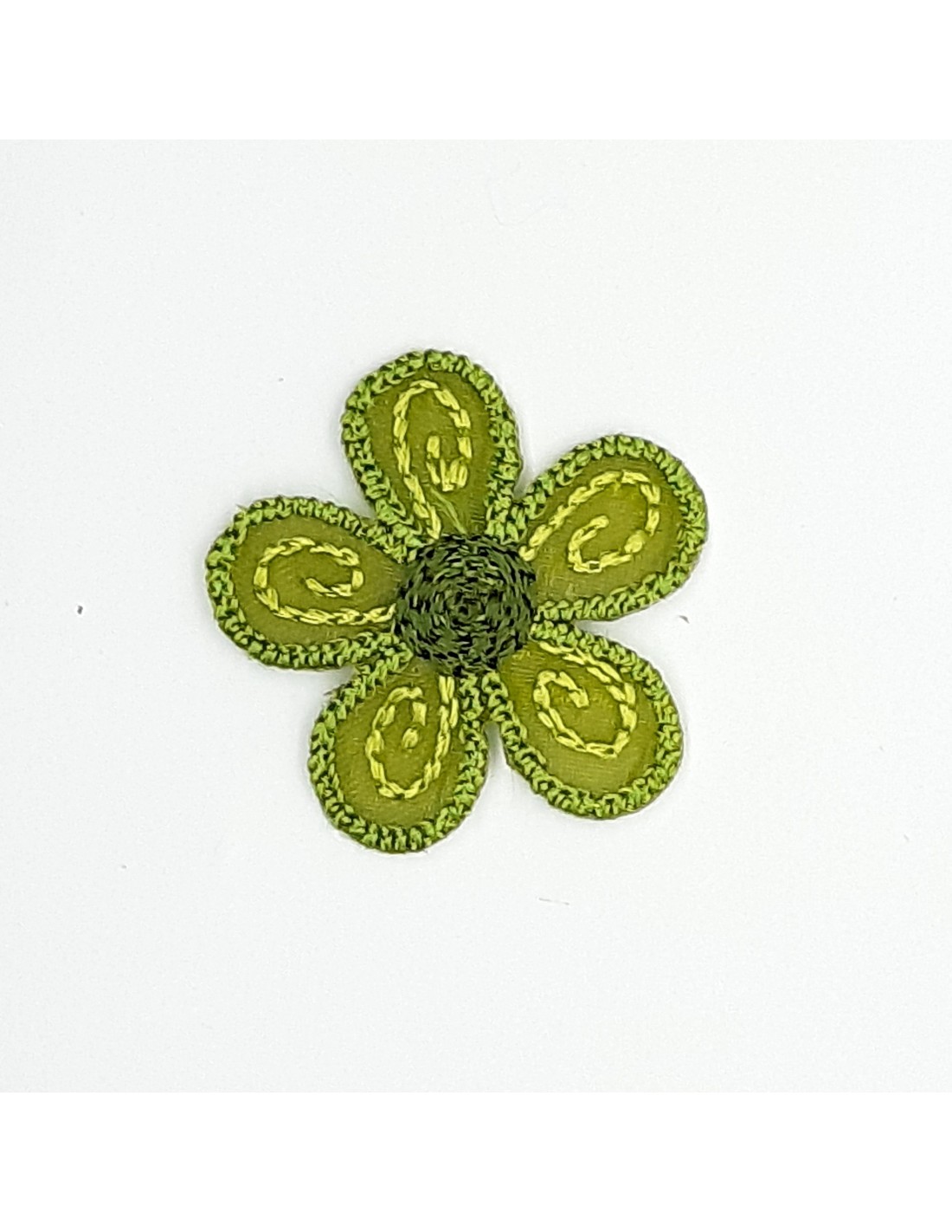 Aplique flor decorativa termoadhesiva de 2,5 cms color verde