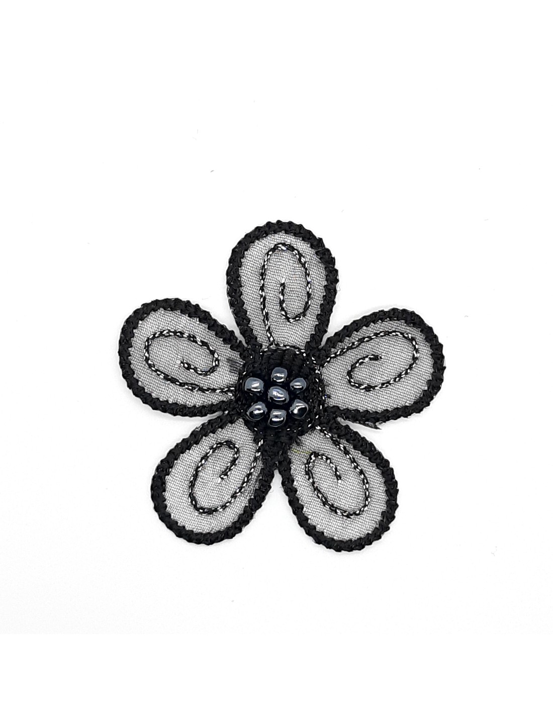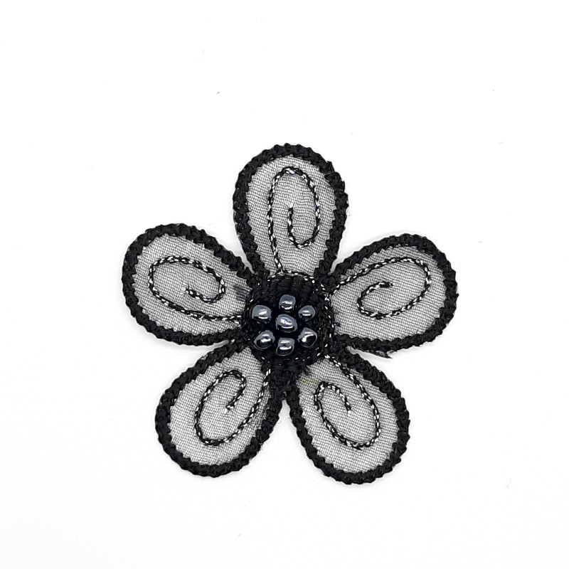 Aplicación flor termoadhesiva con perlas decorativas de color negro