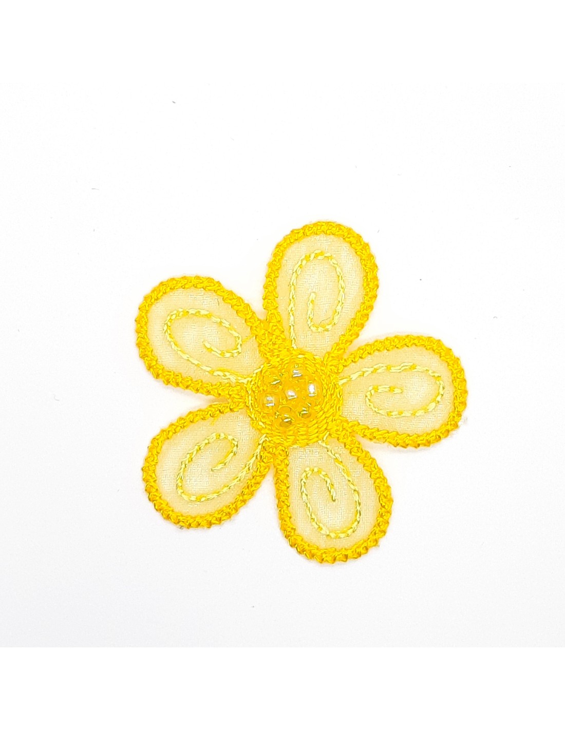 Aplicación flor termoadhesiva con perlas decorativas de color amarillo