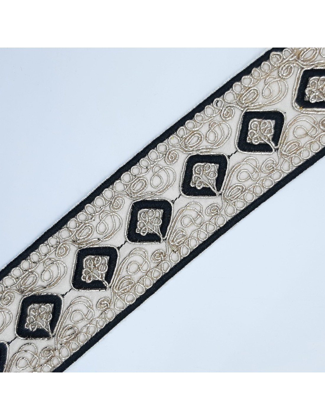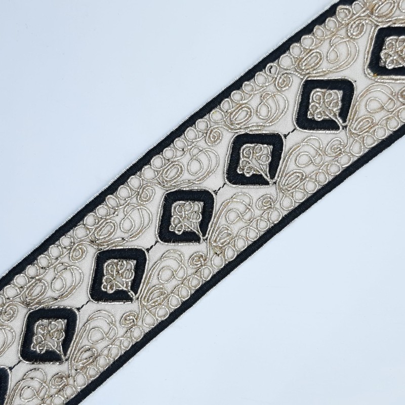 Galón pasamanería bordado lamé de 5,5 cms decorativo.