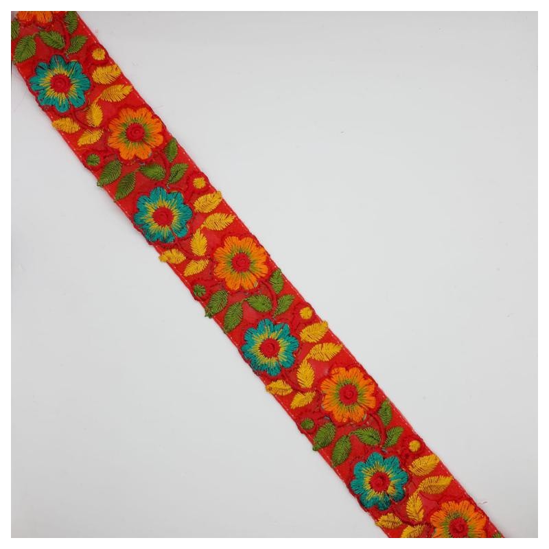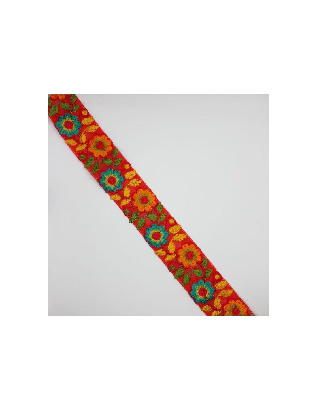 Galón con flores bordadas multicolor. Adorno para decorar prendas, especial para remates y acabados en puños, cintura y cuellos. Ideal para decorar complementos como bolsos, canastos,... y para un sinfín de proyectos decorativos, dándoles un toque único y personal, que no te puede faltar.