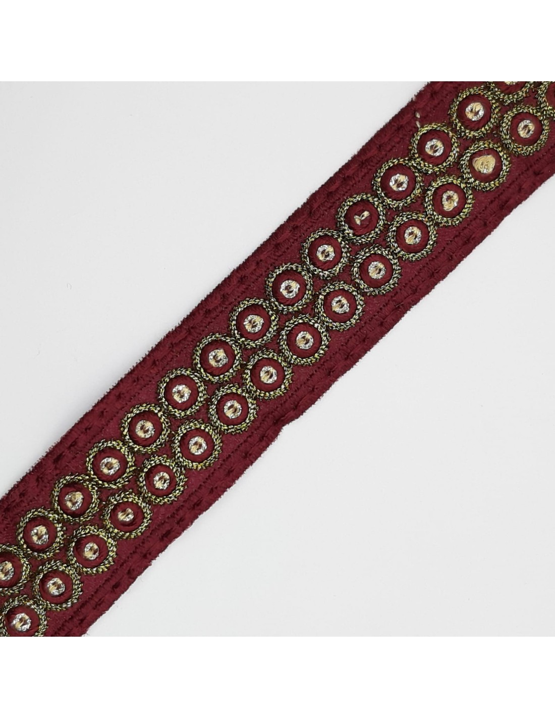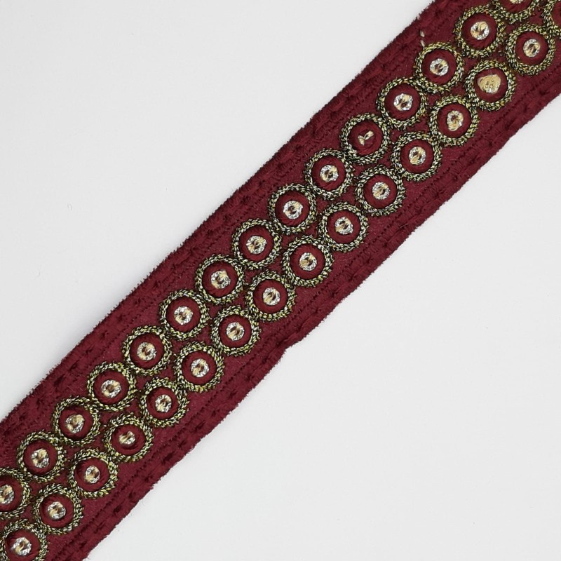 Galón pasamanería círculos metalizados burdeos