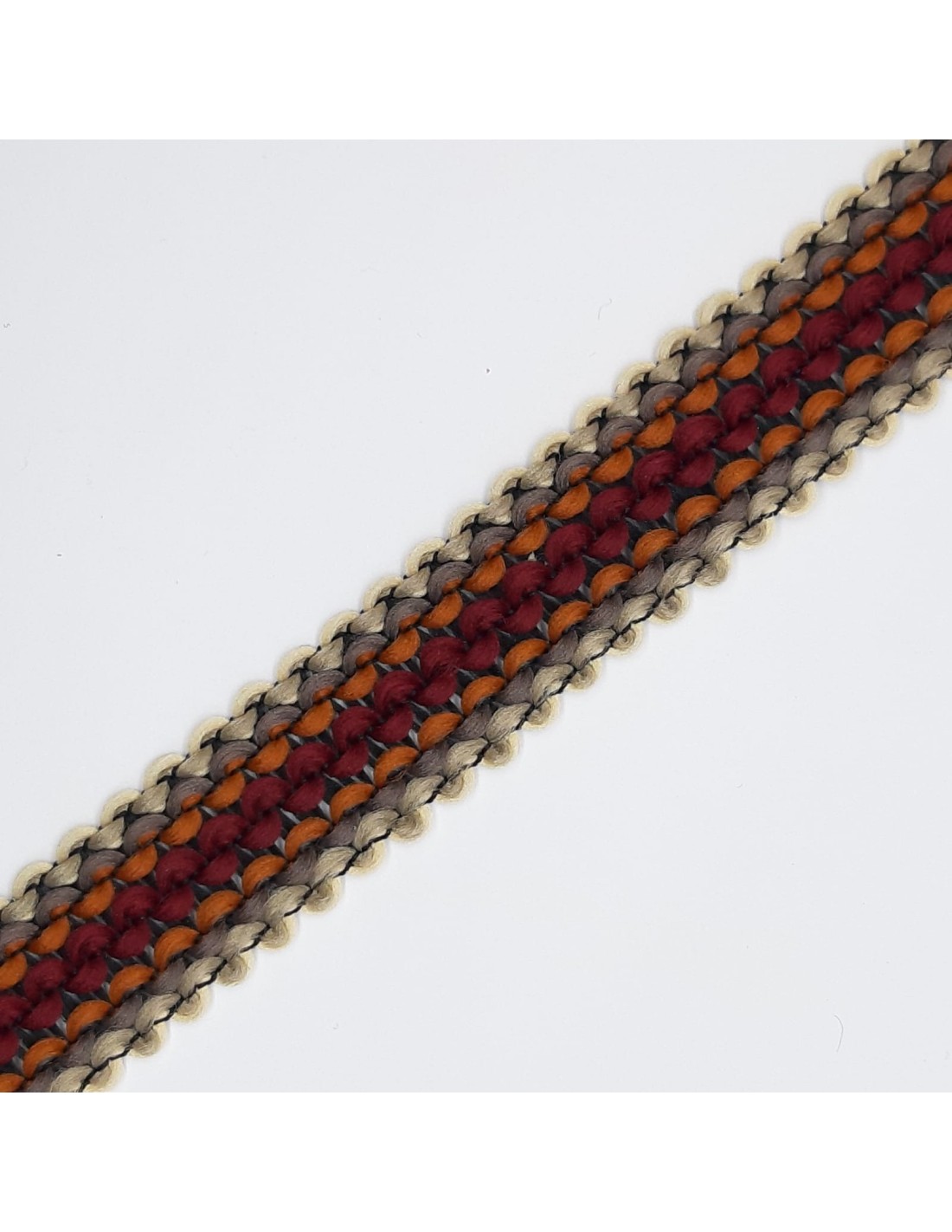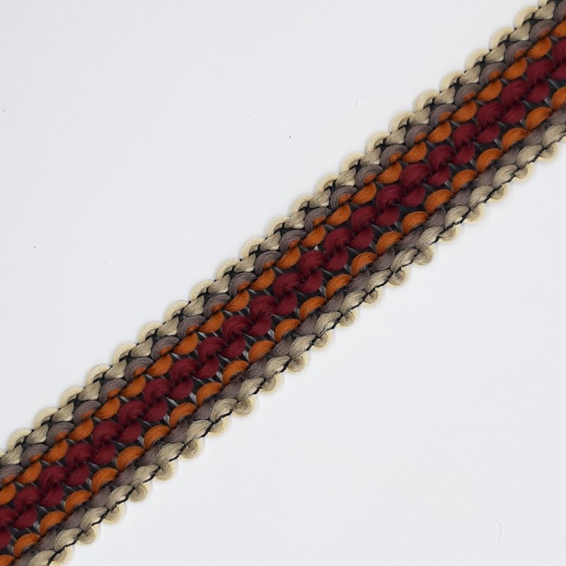 Pasamanería de estilo étnico, con un diseño original y singular, para dar a tus prendas y complementos un toque especial y estético diferente que lo hará único y personal. Pieza versátil con infinidad de proyectos decorativos. Muy utilizado en manualidades y para menajes del hogar.