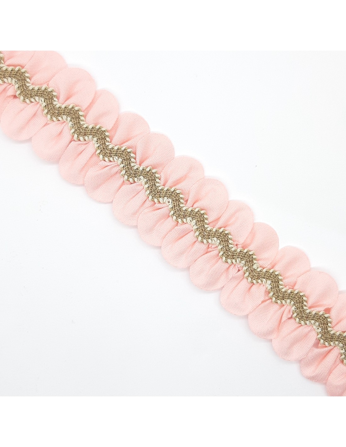 Galón pétalos de color rosa con ondulina decorativa camel.