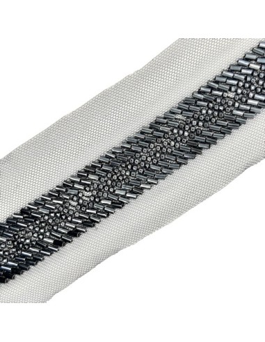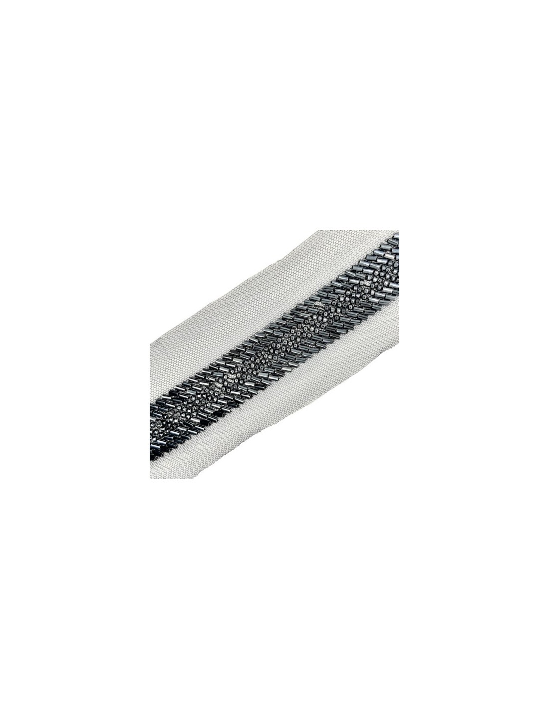 Pasamanería fantasía con abalorios de 2 cms. Cinta de tul bordada con abalorios de rocalla y canutillo.