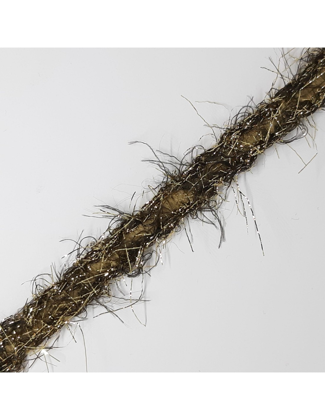 Galón o pasamanería brillante con destellos de pelos decorativos, para múltiples finalidades decorativas. Adorno de estilo chanel elegante y distinguido con textura moldeable. Ideal embellecer para prendas y complementos, tanto de fiesta como casual. Ideal para chaquetas, camisetas, vestidos, bolsos, tocados... Pieza versátil para múltiples fines decorativos.