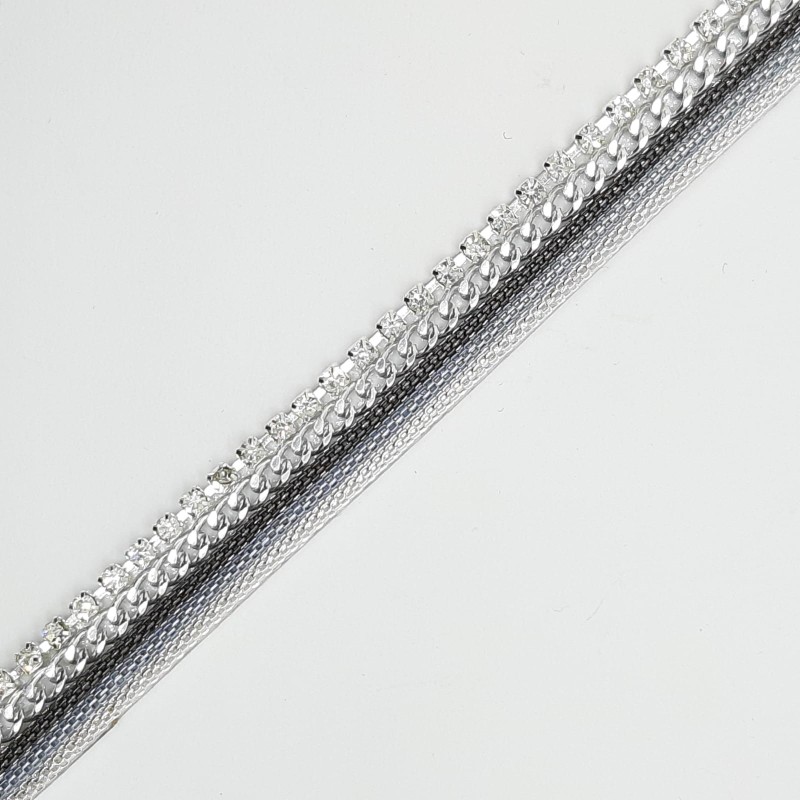 Pasamanería fantasía de 1,4 cm con cadena y piedras decorativas.