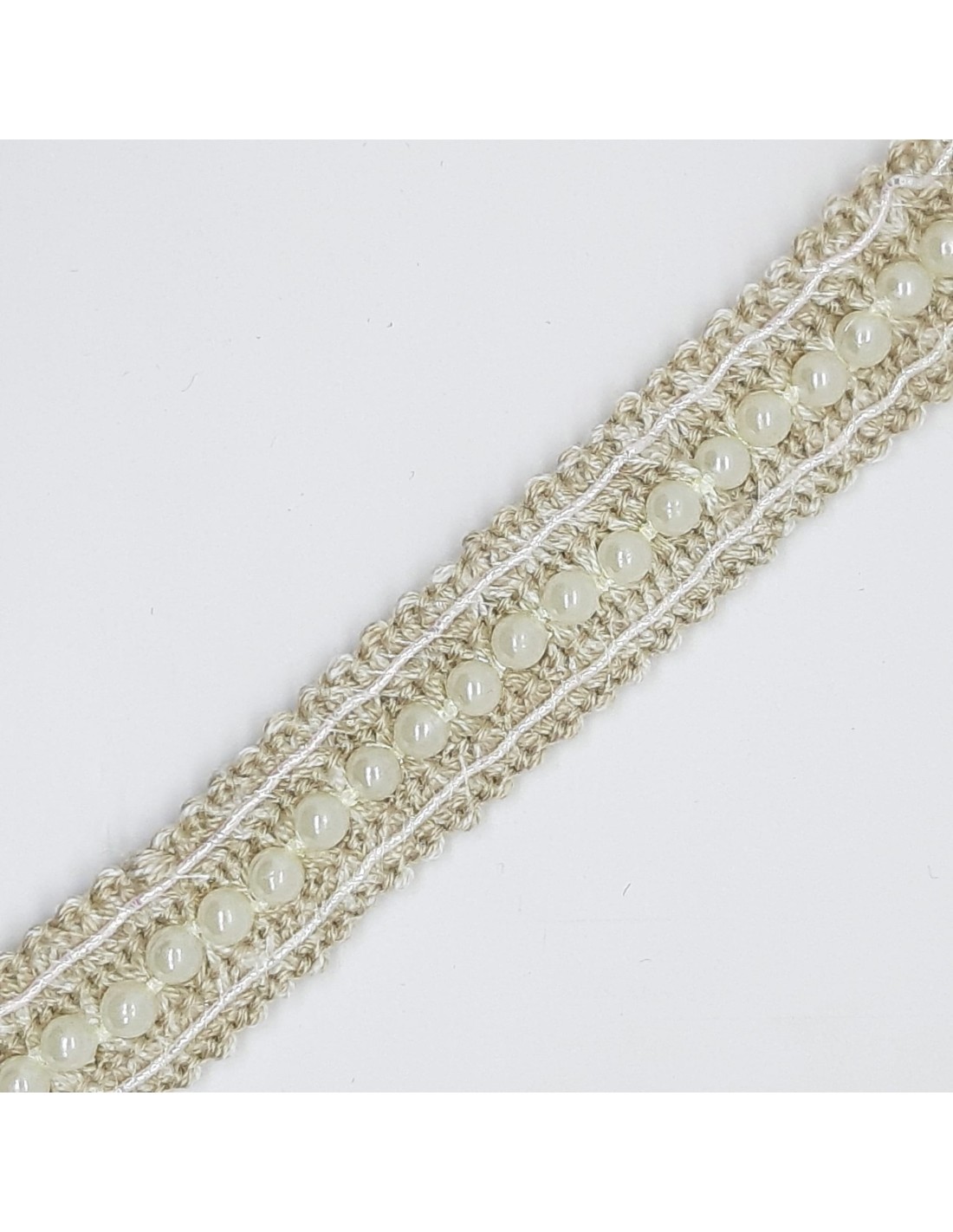 Pasamanería con fila de perlas 1,5 cms decorativa.