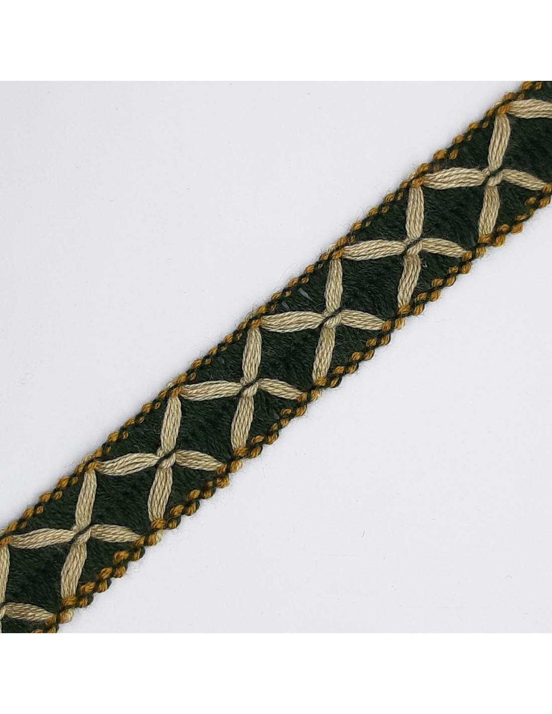Galón pasamanería lana dibujo cruces verde