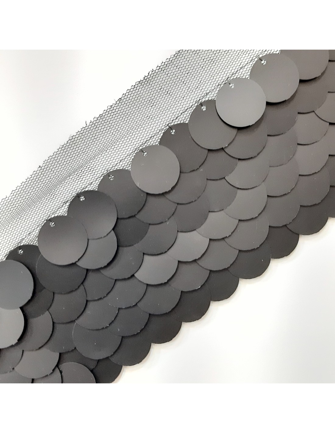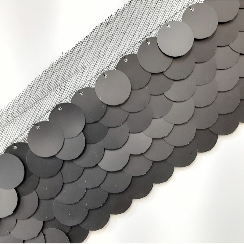 Pasamanería tul peillete de color negro mate de 70 mm.