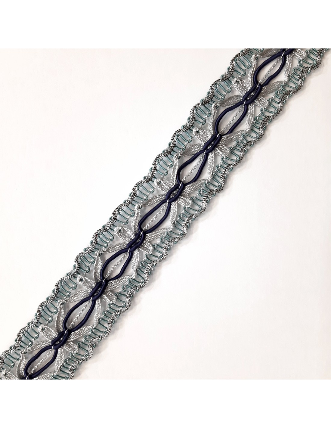 Galón pasamanería decorativo combinado con color marino y verde de 2,5 cms.