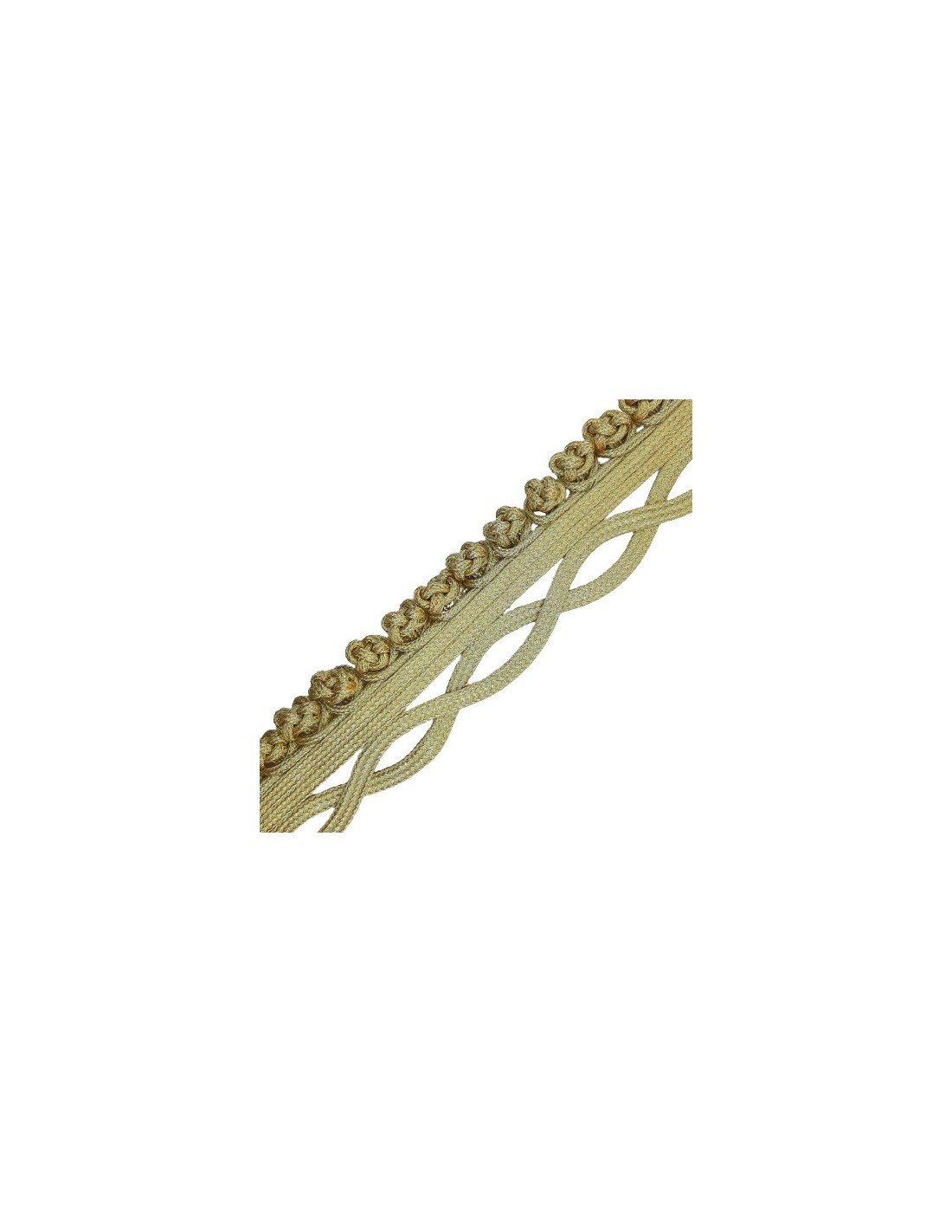 Galón pasamanería color dorado metalizado de 42mm con ondas decorativas.