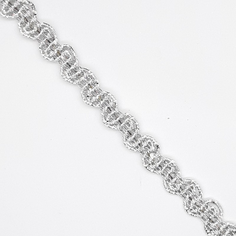 Galón pasamanería metalizada con ondas decorativas de 8 mm. Fabricación Nacional.